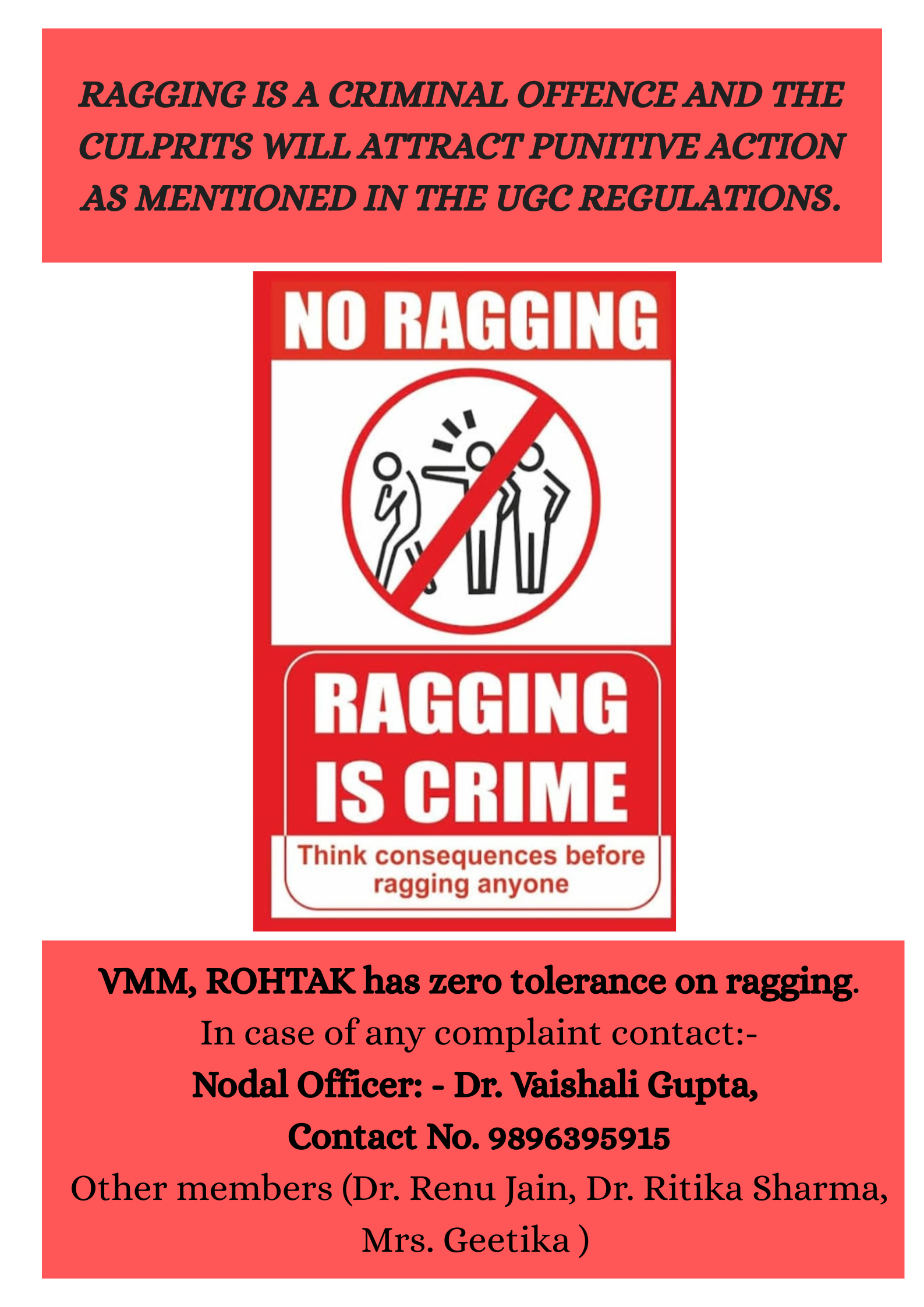 Vaish Mahila Mahavidyalya, Rohtak was founded in 1973 as the Girls’ section of Vaish College, Rohtak by Vaish Education Society to promote and encourage higher education for girls in this region. In 1992, the college got the status of an independent college, affiliated to Maharshi Dayanand University, Rohtak and has been receiving grant from UGC from the session 1997-98.